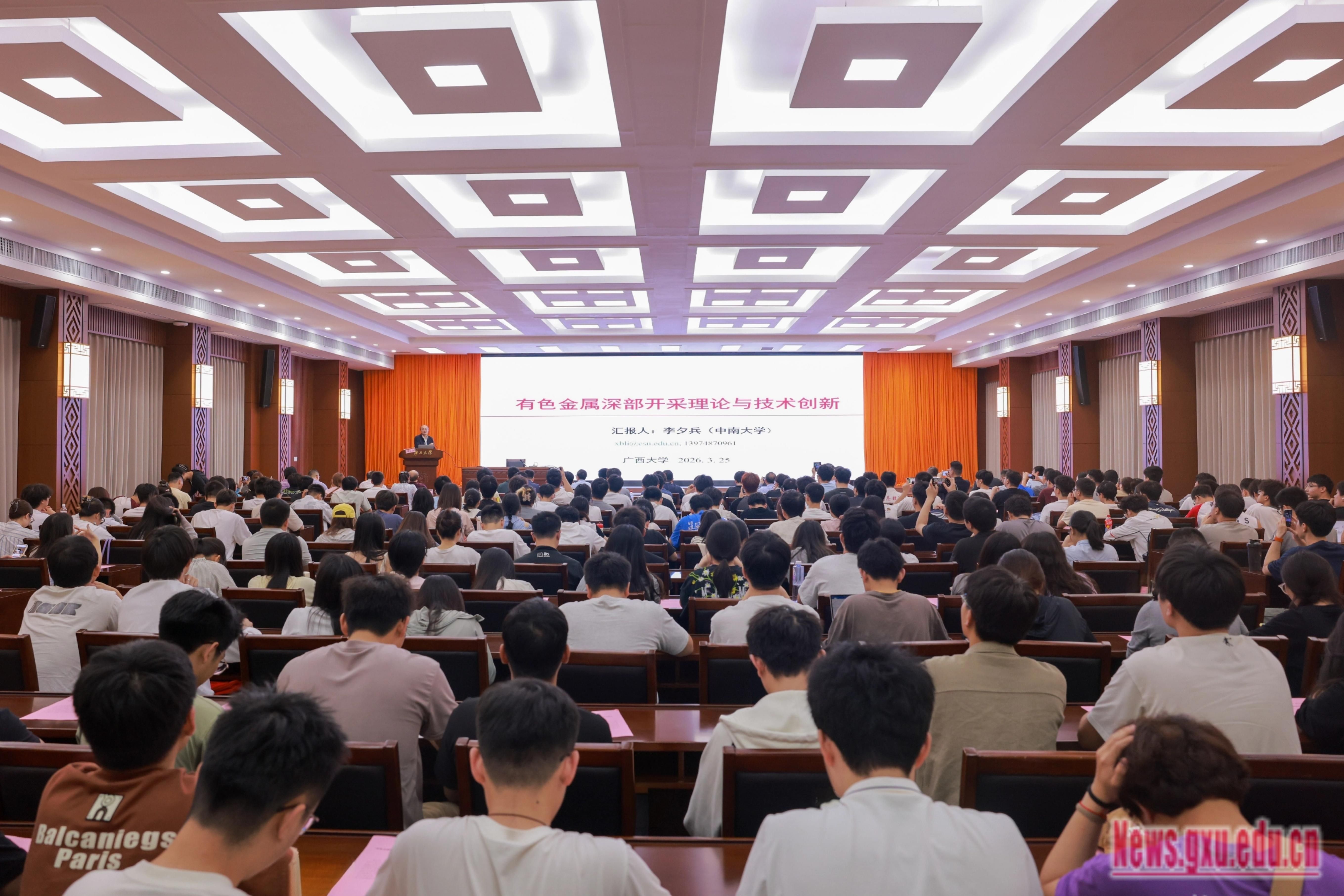 邀请,做客我校君武大讲坛,作题为《有色金属深部开采理论与技术创新》的学术报告。学院领导、相关专业师生到场聆听,现场座无虚席,学术氛围浓厚。