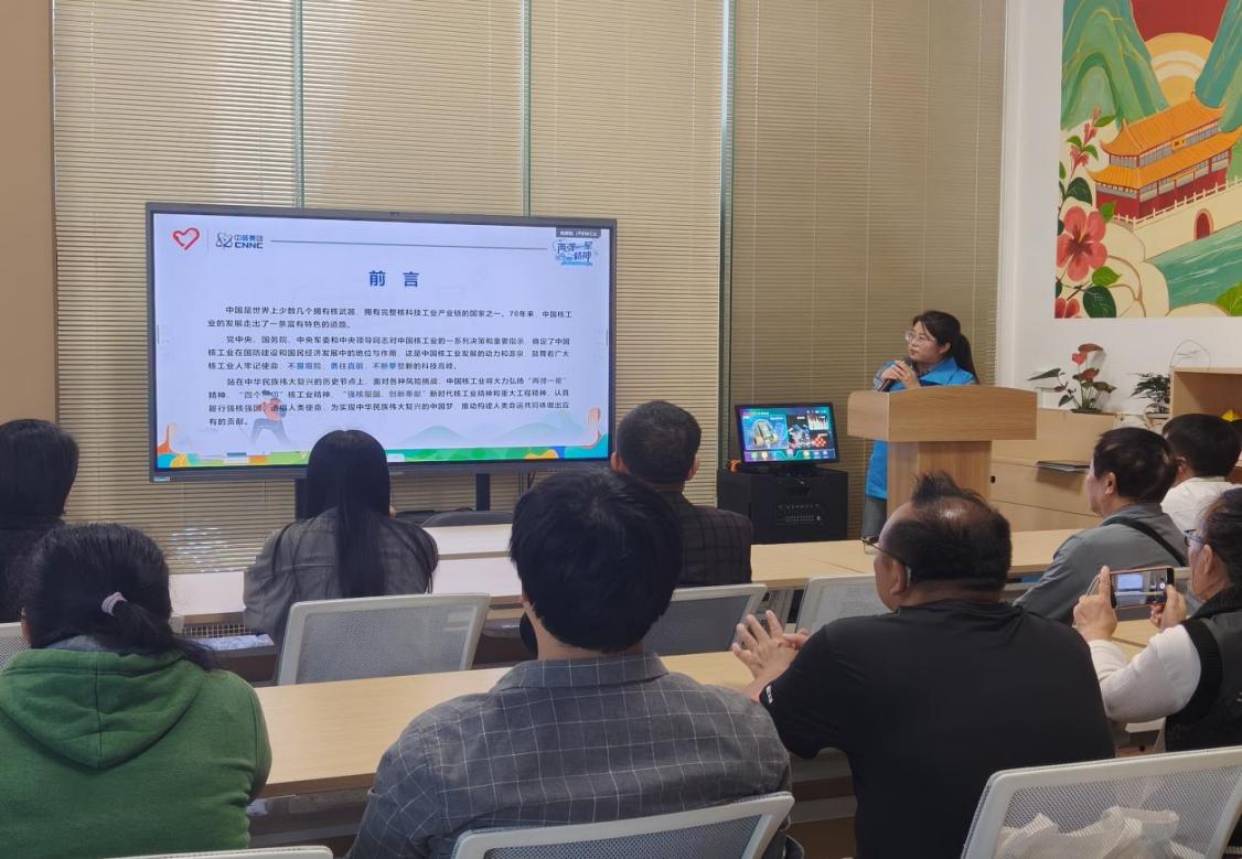 在宣讲环节,学院“薪火”理论宣讲团成员刘景叶、梁立聪以饱满的热情,从郭永怀冲破阻挠毅然归国,到王淦昌隐姓埋名扎根戈壁,深情讲述了“两弹一星”事业中鲜为人知的动人故事和辉煌成就,将“热爱祖国、无私奉献,自力更生、艰苦奋斗,大力协同、勇于登攀”的“两弹一星”精神内涵,通过平实的语言和鲜活的案例传递给在场每一位听众。