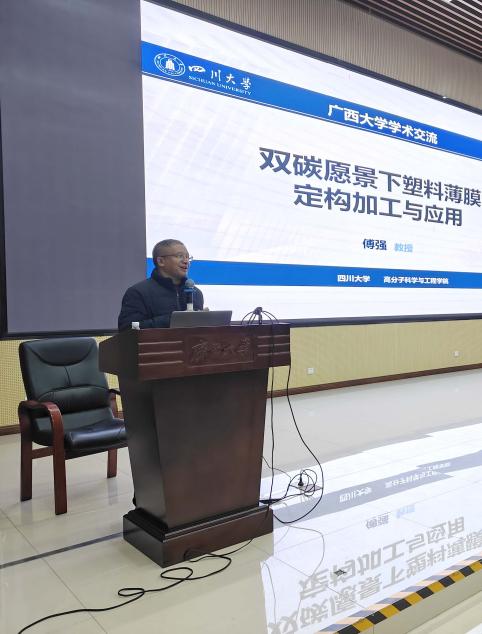 作题为《塑料薄膜定构加工与工业应用》的学术报告。报告会由学院院长邹炳锁主持,吸引了众多师生参与。